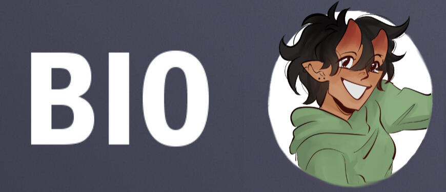 G E N E R A L :My main interests revolve around art, films and games. World building and OC creating is a personal hobby I enjoy, and it quite often ends up being collaborative projects with friends alike. Currently, I seek to improve my hobbies and expanding from 2D to 3D art and coding.L I K E S :My favourite is 3! I'm a huge fan of cats but my go-to animal is a dragonfly.